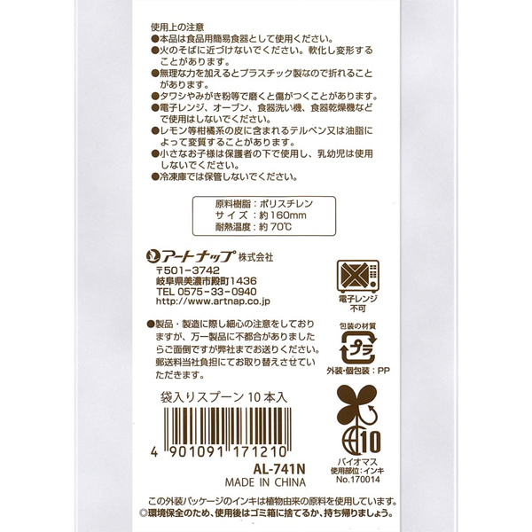 スプーン全長約16cm 個包装10本入