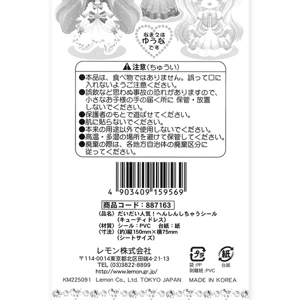 衣装やアクセサリー、小物を重ねて着せ替えができるシールです。
