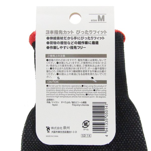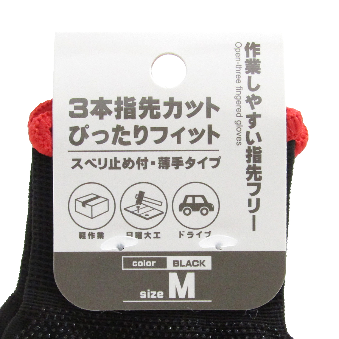 3本指先カット手袋 黒 M