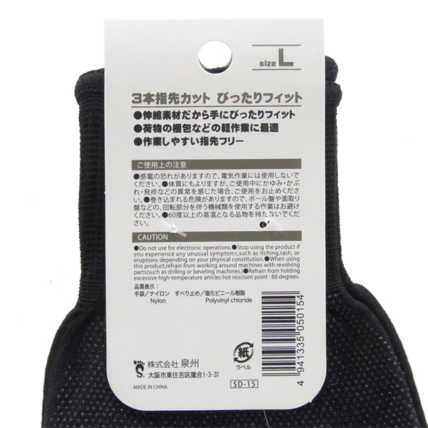 3本指先カット手袋 黒 L