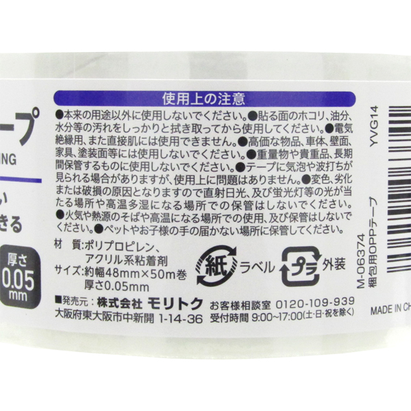 透明で目立ちにくく、荷造りがきれいにできるOPPテープ。