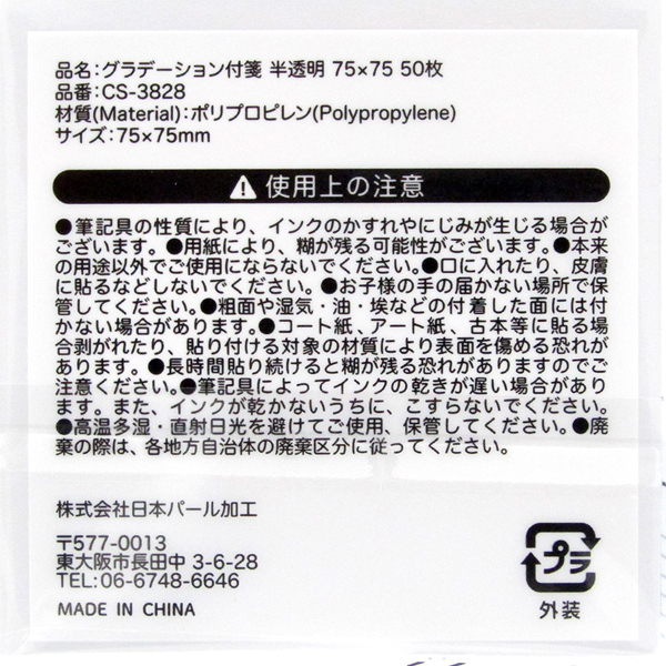 ふせん約7.5×7.5cm 半透明 3色アソート