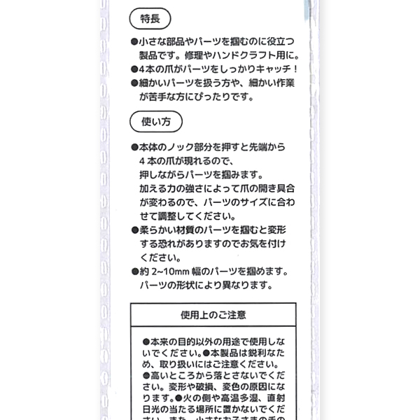 4本の爪で小さな部品やパーツをすっかりキャッチ!