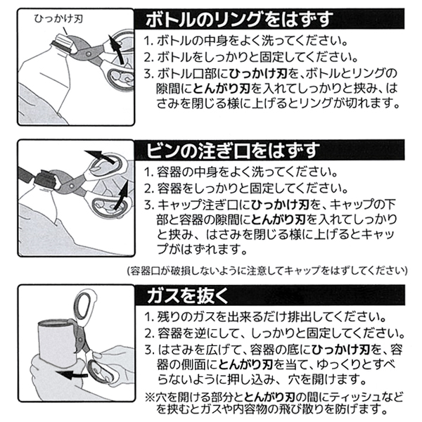 ボトルのリングや注ぎ口はずし、ガス抜きに。
