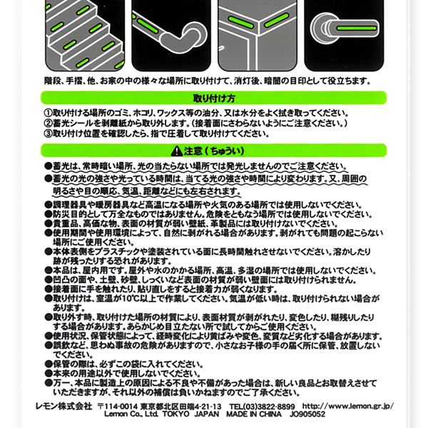 階段、手摺など様々な場所に取り付けて、消灯後、暗闇の目印として役立ちます。