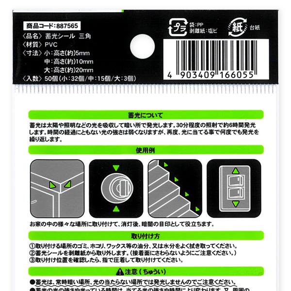 蓄光シール 三角
