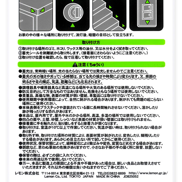 お家の中の様々な場所に取り付けて、消灯後、暗闇の目印として役立ちます。
