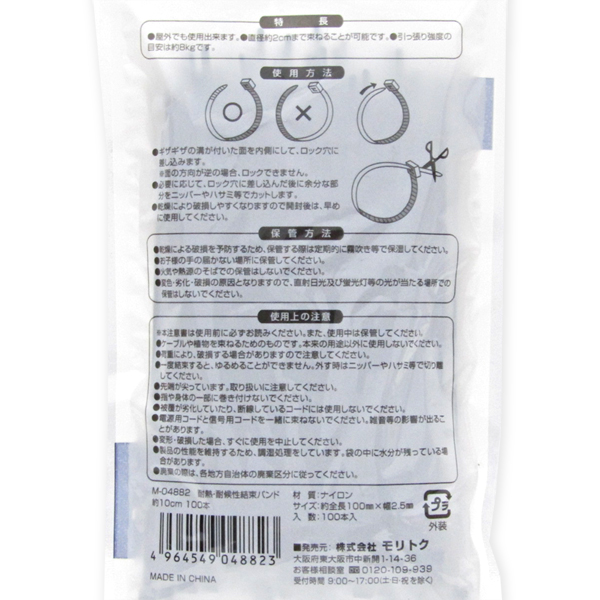 熱や紫外線に強く屋外で使える耐熱・耐候性の結束バンド。
