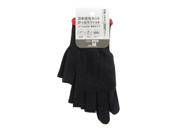 3本指先カット手袋 黒 M