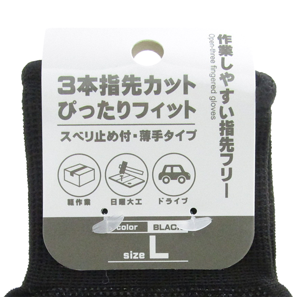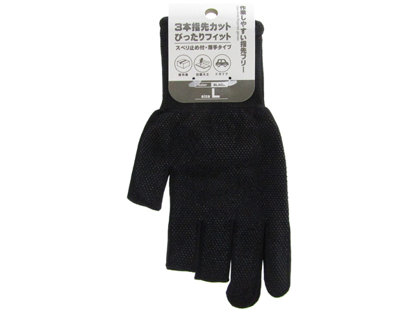3本指先カット手袋 黒 L