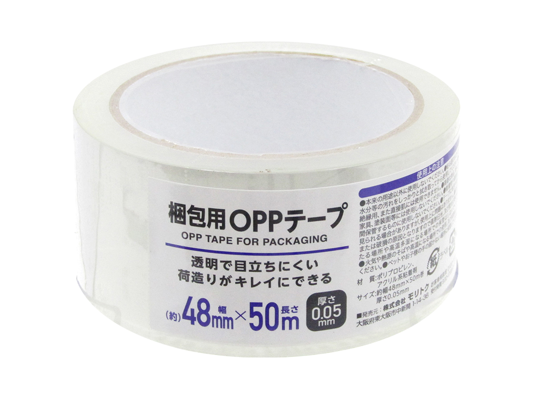 透明で目立ちにくく、荷造りがきれいにできるOPPテープ。