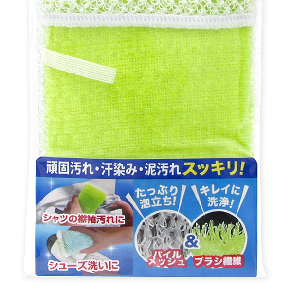 パイルメッシュでたっぷり泡立ち&ブラシ繊維でキレイに洗浄!